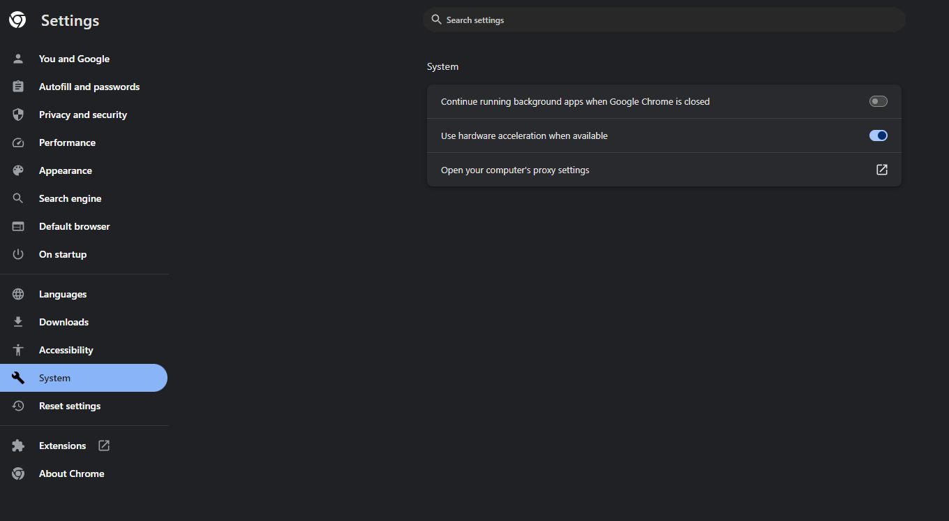 For Chrome, open settings, click on System, then make sure the toggle is on